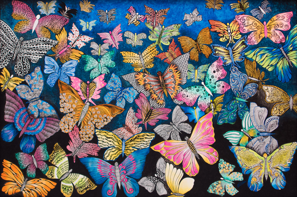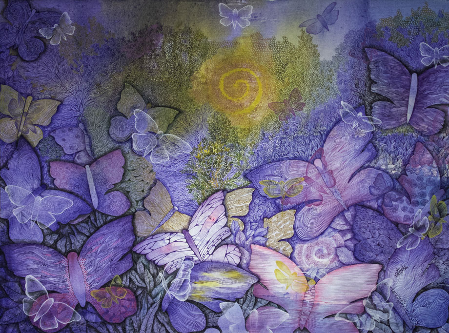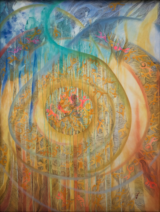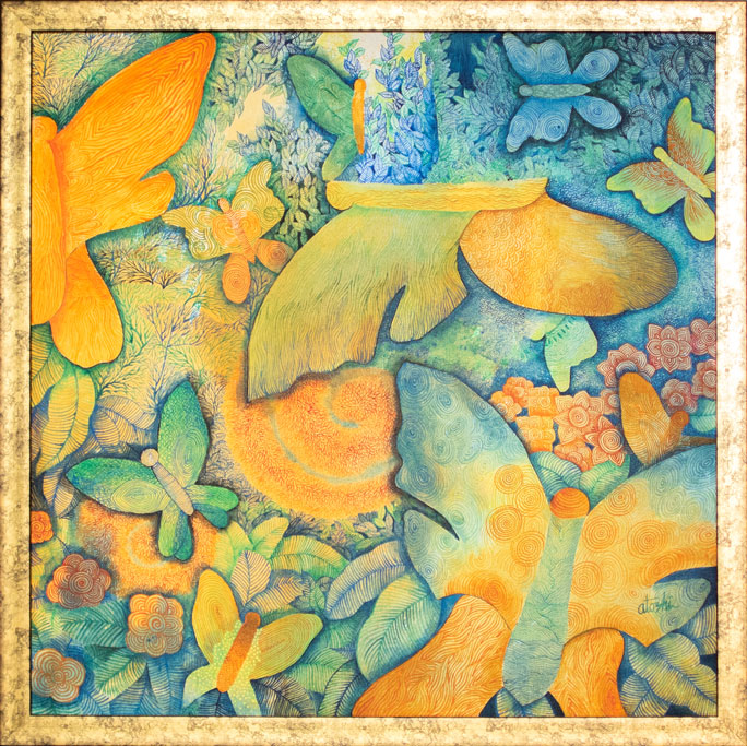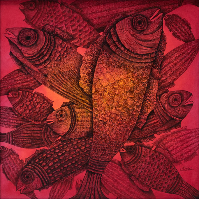 "Atoshi's paintings are artwork beyond their original meaning". These are spontaneous overflow of essentially humanistic concepts. Her artwork remind us of the bases of human life. Human love, affection as well as the insecurities of our lives are the crux of her inspiration. Her vibrant play of colours on the canvas with intricate artwork is the visible groundwork of her style of paintings.